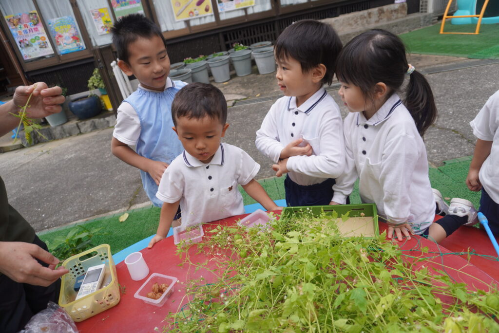 夏にミニトマトやキュウリなど夏野菜の生長を楽しみ、収穫し味わった子どもたち。