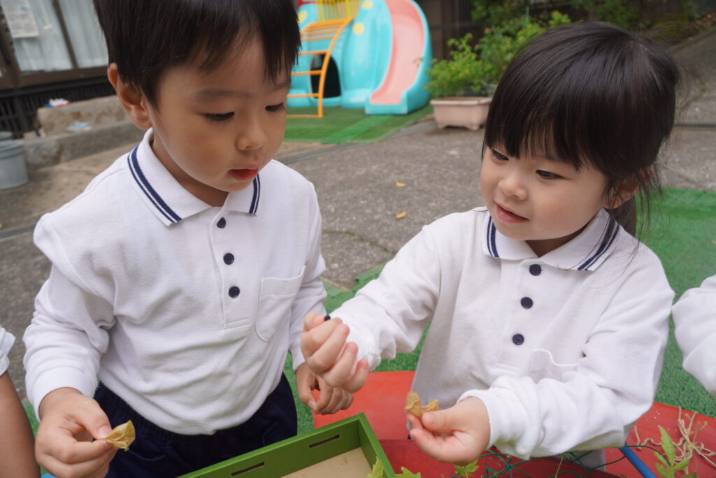 「茶色くなった風船は、種をとってもいいんだよ。緑色はまだね。」大きいさんに教えてもらって…