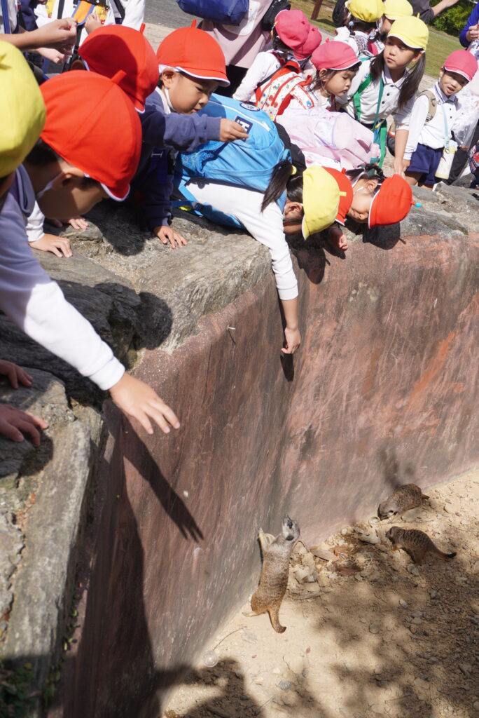 「ほら、ご飯だよ~食べて~」子どもも食べてもらいたくて必死!ミーアキャットも食べたくて一生懸命背伸びして😊
