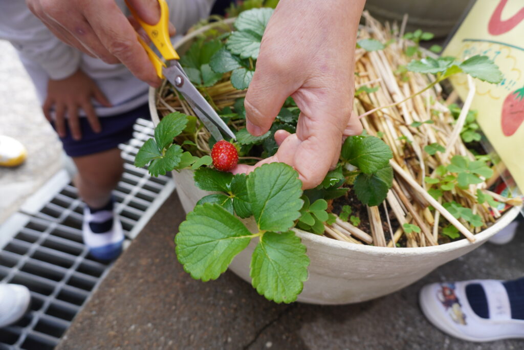 一番乗りでイチゴを食べたお友だち。お味はどうだったかな?