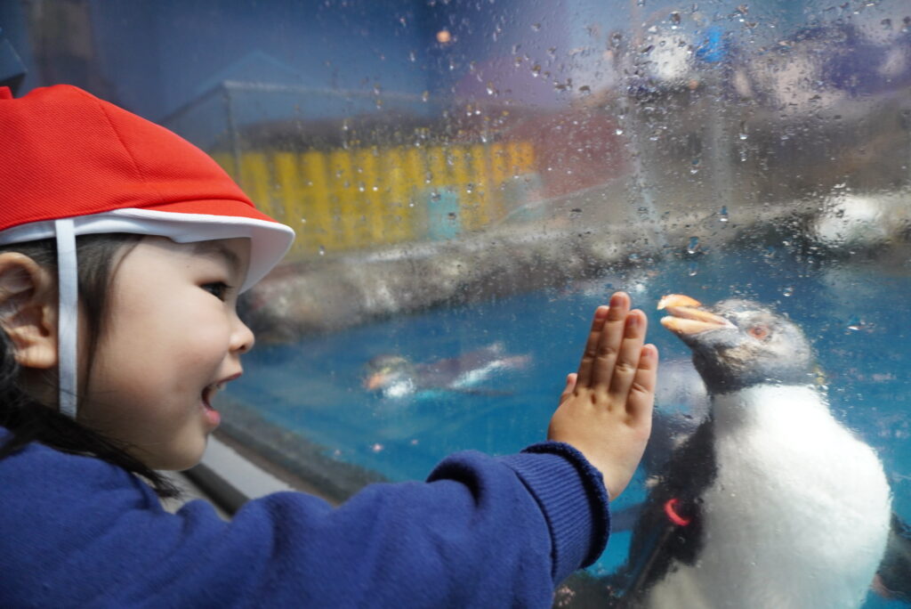 ペンギンたちも、子どもの近くまで来てくれました😊 かわいいね~🐧