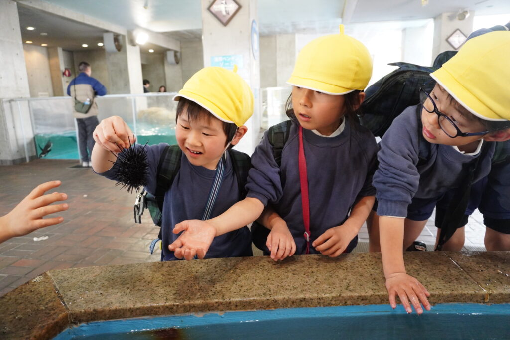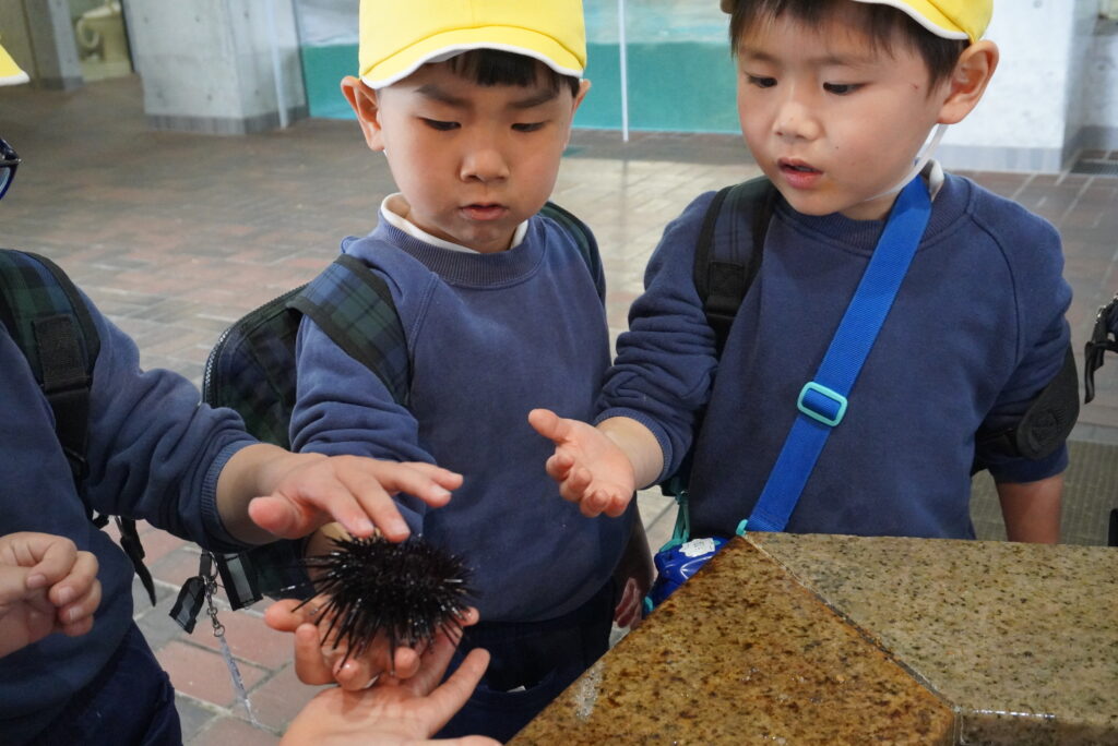 ヒトデってざらざらしてるんだね。ウニも優しく持ったら痛くないね。実際に触ってみたら分かることが、たくさんあったみたい😊