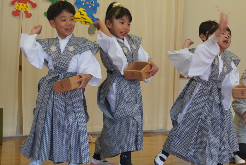 「鬼は~外!」子どもたちの元気な声に、きっと鬼さんたちも一目散に逃げていったことでしょう!