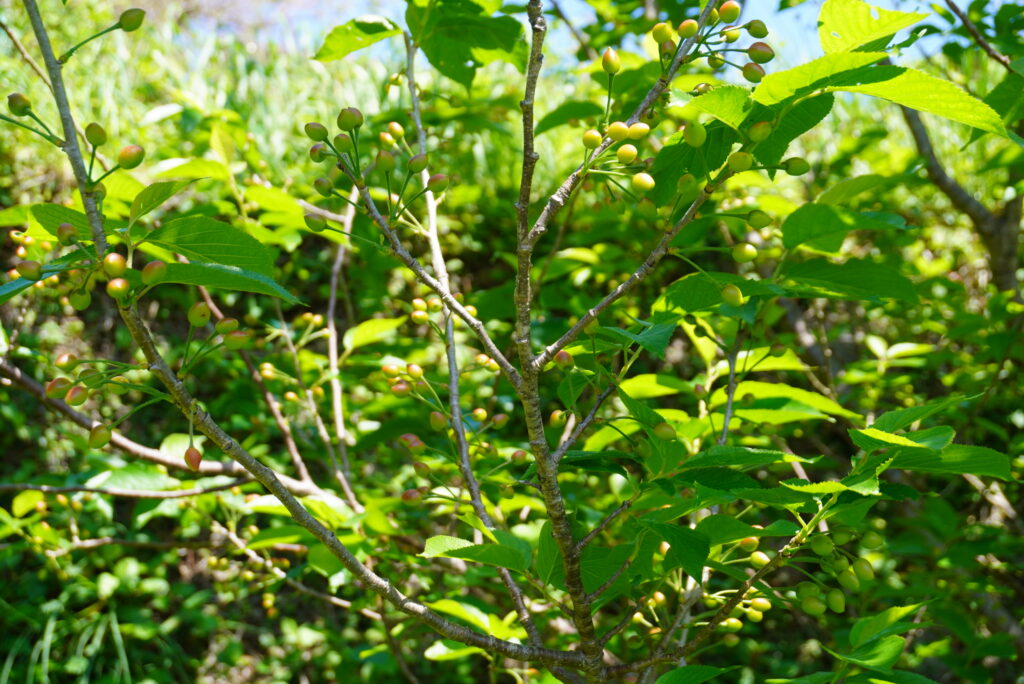 さくらんぼの木にたくさんの実がなっているのを見つけたよ!早く赤くなあれ🍒